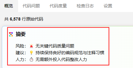 - 进入“代码检查详情”页面,选择“概览”页签,查看到摘要信息(延迟告警场景下不支持生成智能化摘要)。