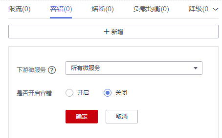 设置本微服务调用下游微服务的容错规则,下拉菜单可直接选择下游微服务。
