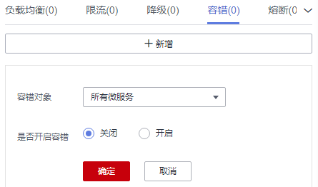 开启:向容错对象发起请求时发生错误的处理策略,开启后,会根据选择的处理策略处理请求。