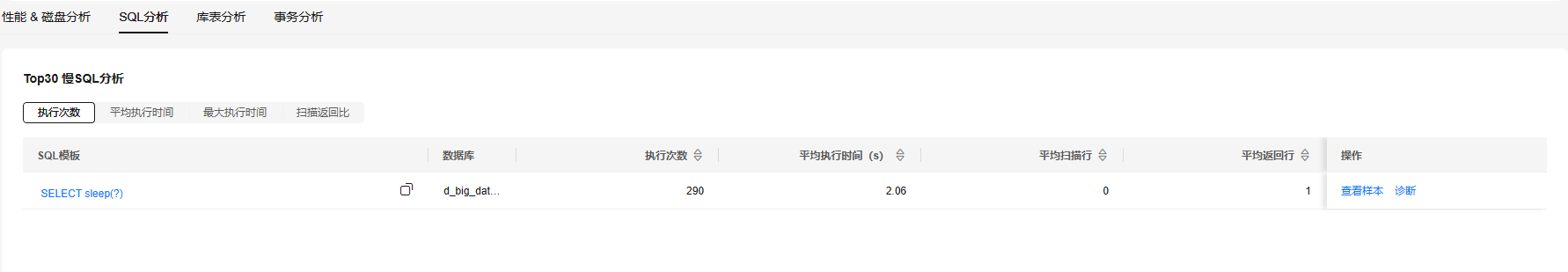 在“慢SQL分析”区域,可查看当前实例的慢SQL分析结果。
