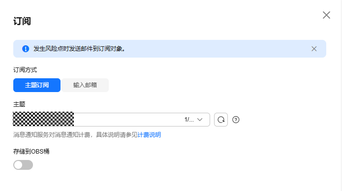 主题是消息发布或客户端订阅通知的特定事件类型,当您选择“主题订阅”时,若此处没有需要的主题则需先创建主题并添加订阅,创建主题并添加订阅请参见创建主题、添加订阅。当前仅支持协议为邮件的主题订阅。