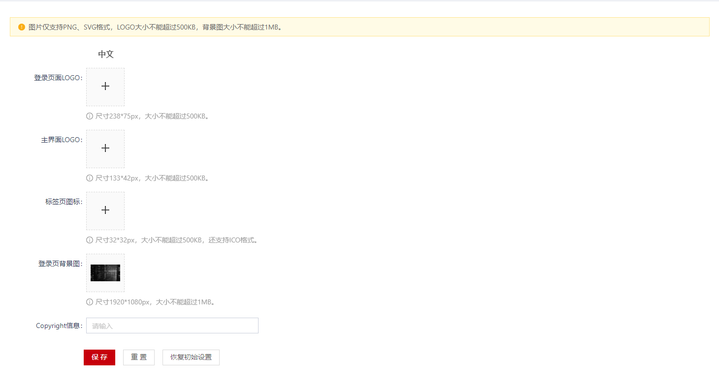 您可以通过页面定制设置,自定义logo及版本信息。