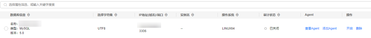 - 单击“确定”,数据库列表中将新增一条“审计状态”为“已关闭”的数据库。