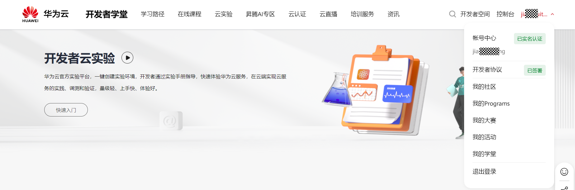 在KooLabs云实验页面中,点击右上角【个人中心】,选择【我的学堂】,切换至【我的实验】,即可查看实验记录页面。