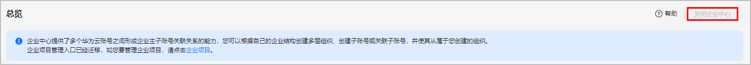 当不再使用企业中心时,客户可以在企业管理“总览”页面关闭企业中心。