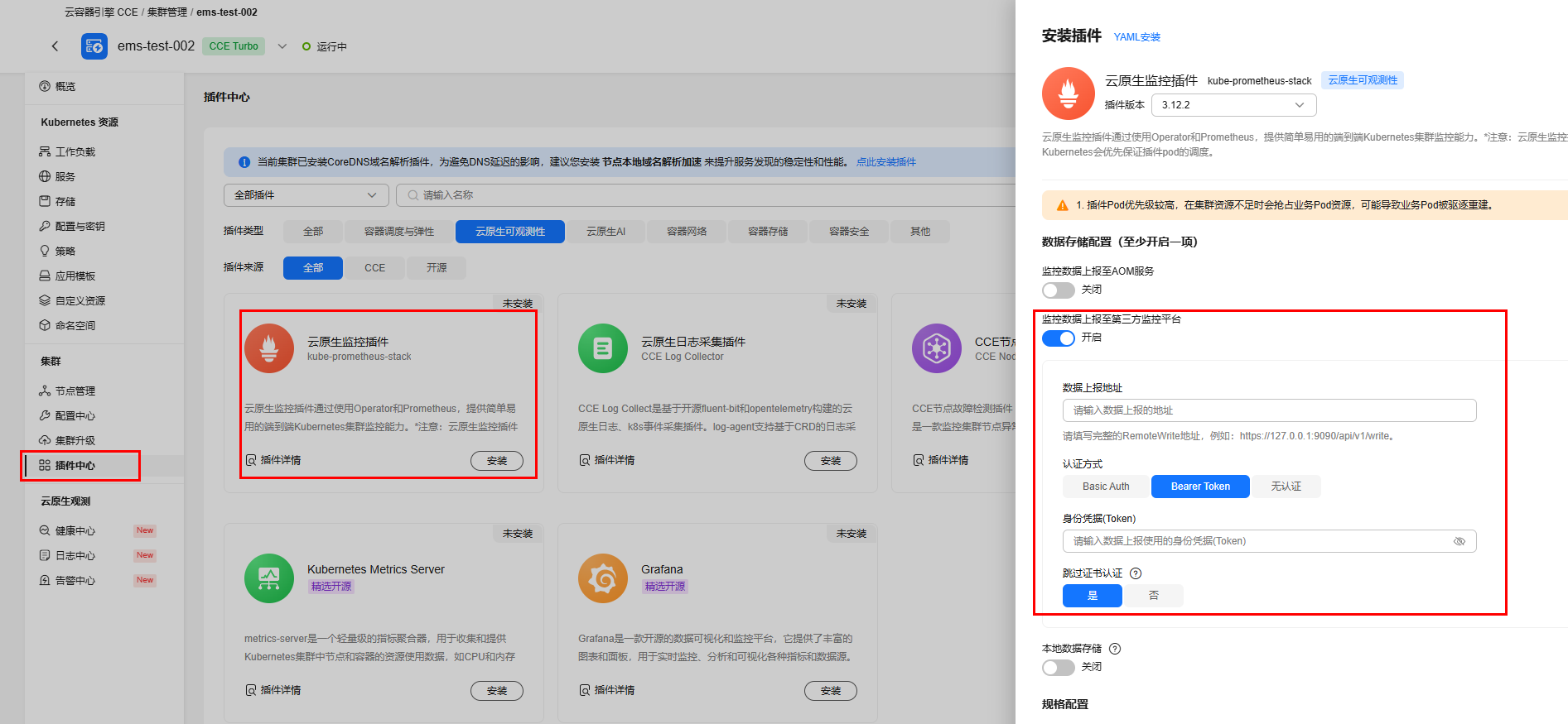 配置运维指标可以让EMS运维接收到已部署EMS的CCE集群的监控指标,从而提升运维质量,更好地为您提供服务。EMS通过普罗插件收集指标信息,用户需要通过配置第三方监控平台,将EMS的监控平台采集地址配置到AOM上,以便EMS也能获取指标信息。
