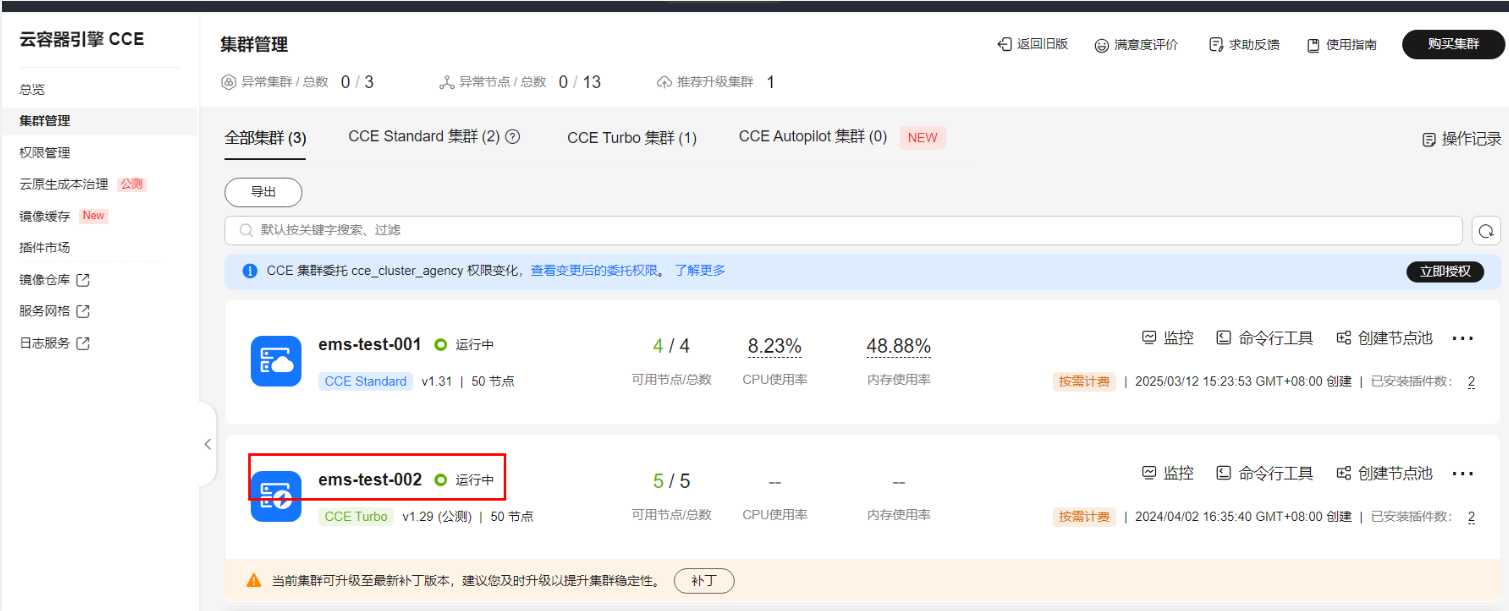 - 登录CCE控制台,单击集群名称进入部署EMS工作负载的集群。