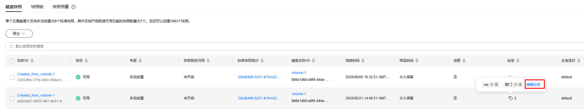 标签用于标识云资源,可通过标签实现对标准快照资源的分类和搜索。