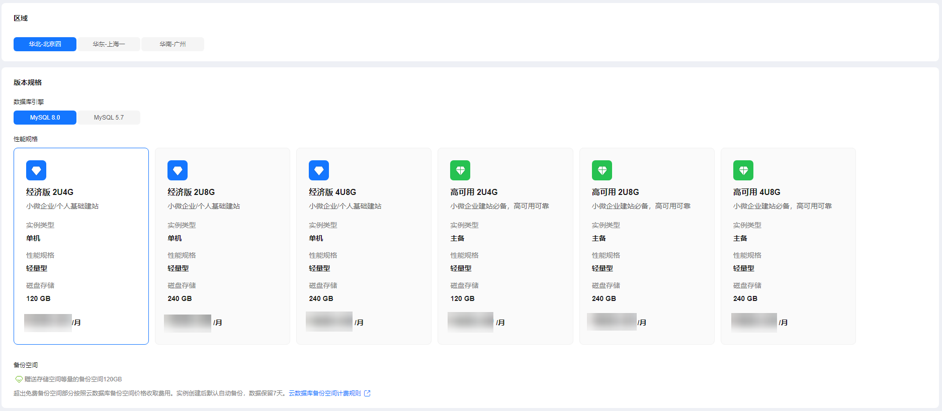 FlexusRDS for MySQL实例仅支持“包年/包月”购买,您可以根据业务需要定制相应计算能力和存储空间的FlexusRDS for MySQL实例。