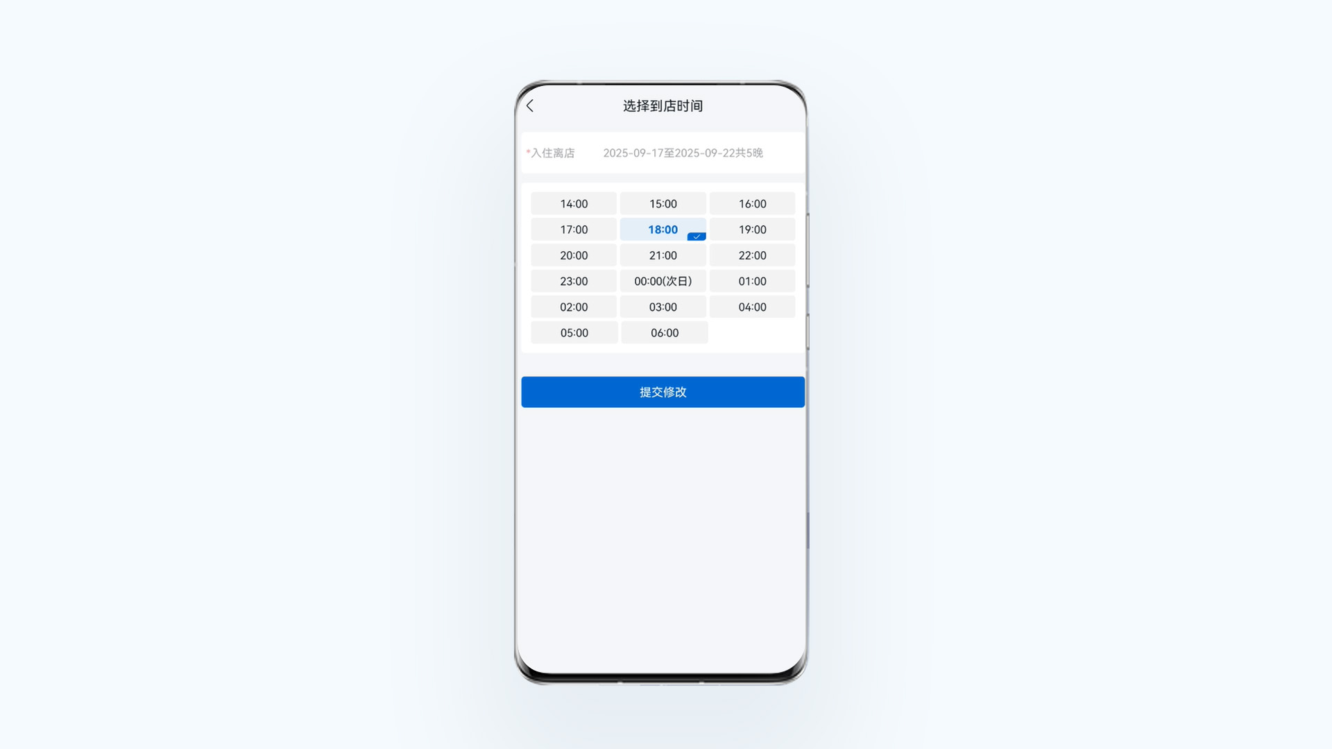 3)航班、火车晚点时,可点击“晚些到店”选择到店时间,提醒酒店安排预留房间;