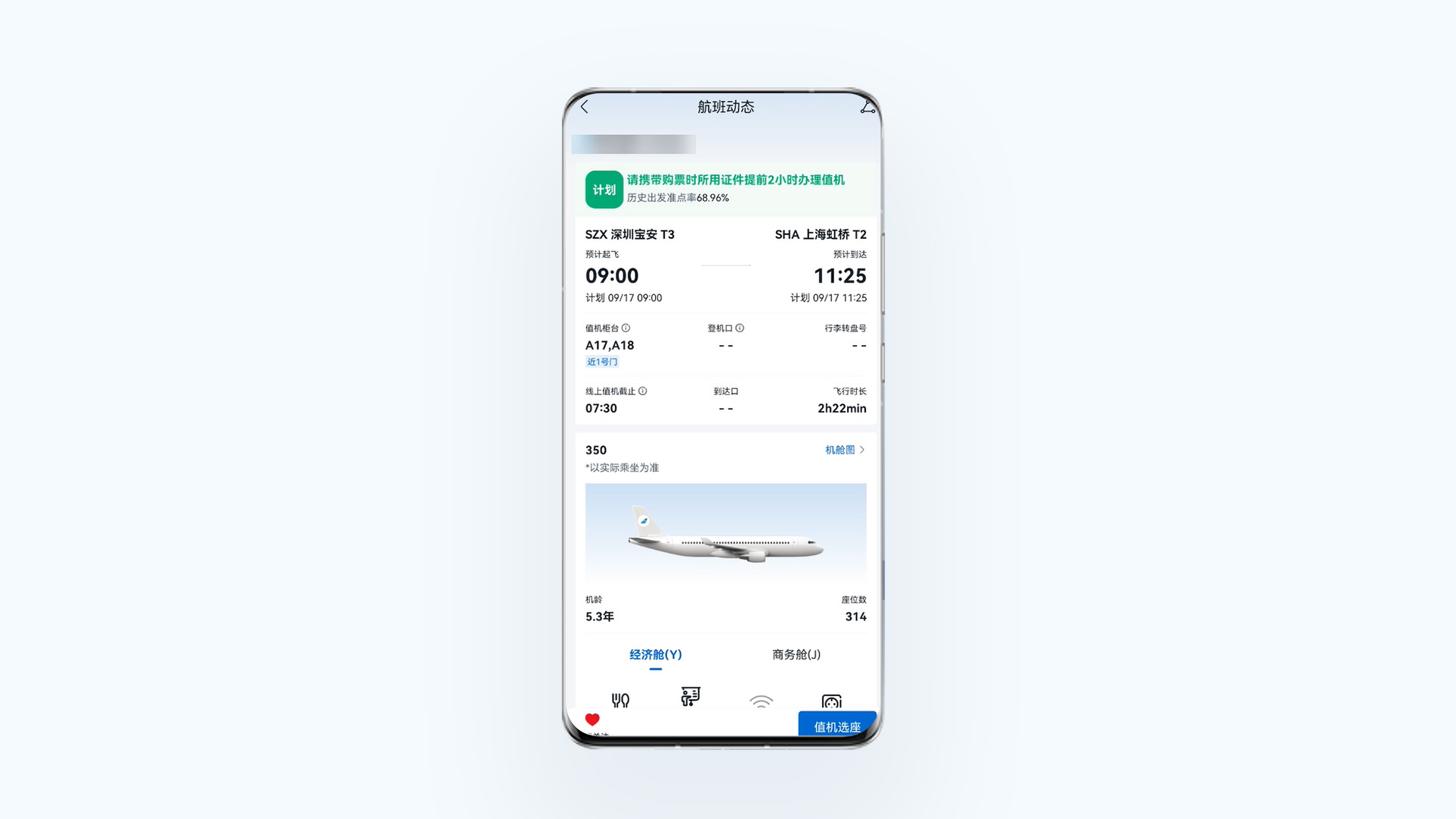 2)点击“航班动态”,可进一步查看机型、舱位等航班详情;