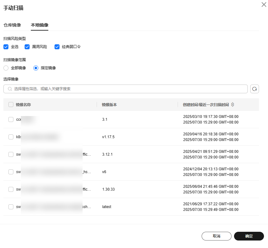 - 选择“本地镜像”页签,配置手动扫描参数,相关参数说明请参见表1。