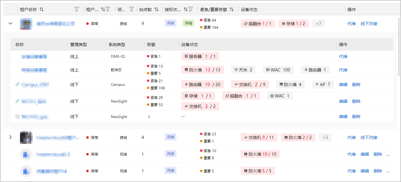 展开租户管理的线下系统信息,查看线下系统状态及数据。