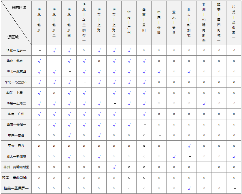 图2 支持跨区域复制镜像的区域- “√”表示支持跨区域复制镜像。