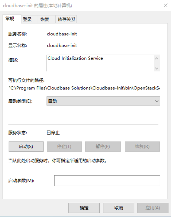 - 通过快捷键“Win+R”打开“运行”窗口,输入“services.msc”并单击“确定”。在“服务”管理界面,查找名称为“cloudbase-init”服务,设置启动类型为“自动”。