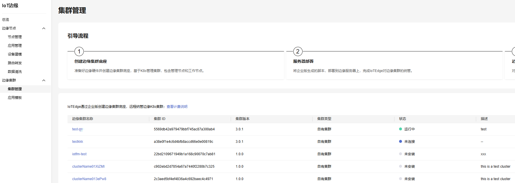 - 在左侧导航栏单击“边缘集群 > 集群管理”,选择要升级应用的“边缘集群名称”,进入集群概览页。