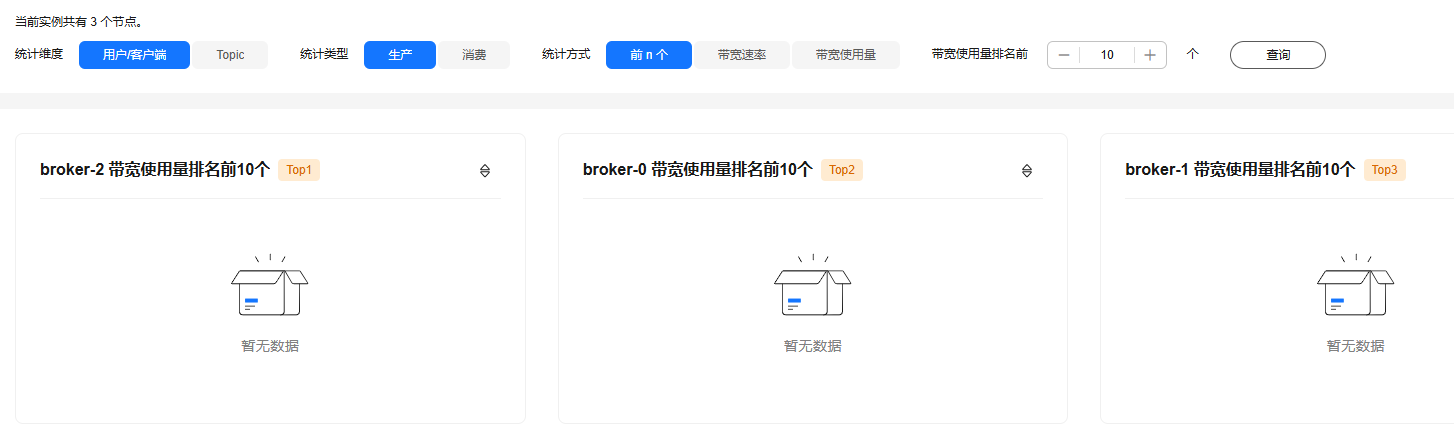 - 前n个:统计带宽使用量排名前x个的用户/客户端/Topic,x由您自行输入。