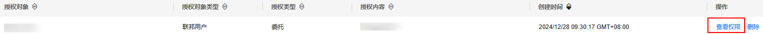 - 如果已获得委托授权,则可以在权限管理页面中查看到已获得的委托授权信息。