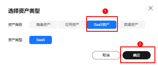 - 在选择资产类型窗口中,资产类别选择“SaaS资产”,点击“确定”。