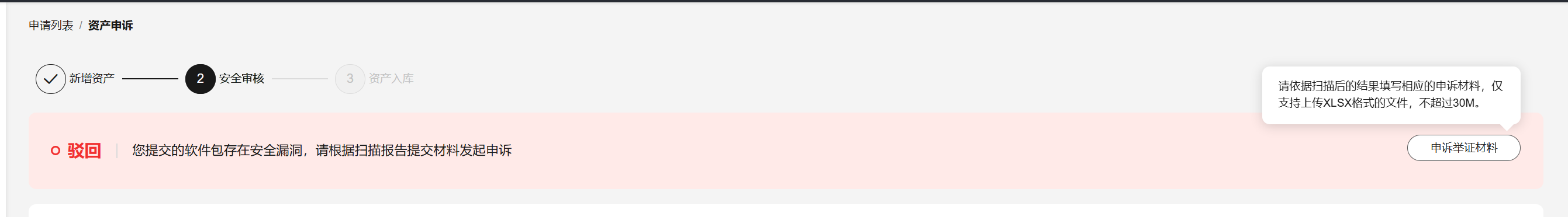 - 当资产状态为“扫描中”,系统将按照云商店商品安全审核标准3.0对资产进行扫描,如有任何疑问可提交工单咨询客服。