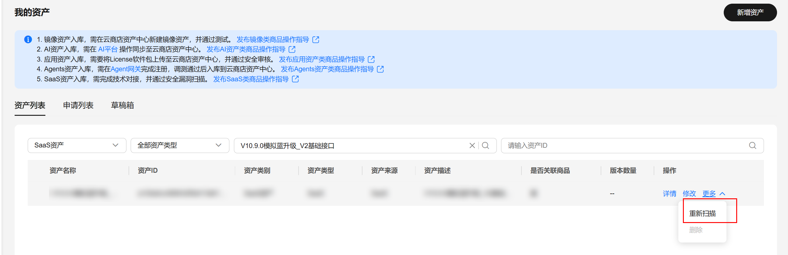 未关联商品的SaaS资产及草稿箱中的资产可以被删除。