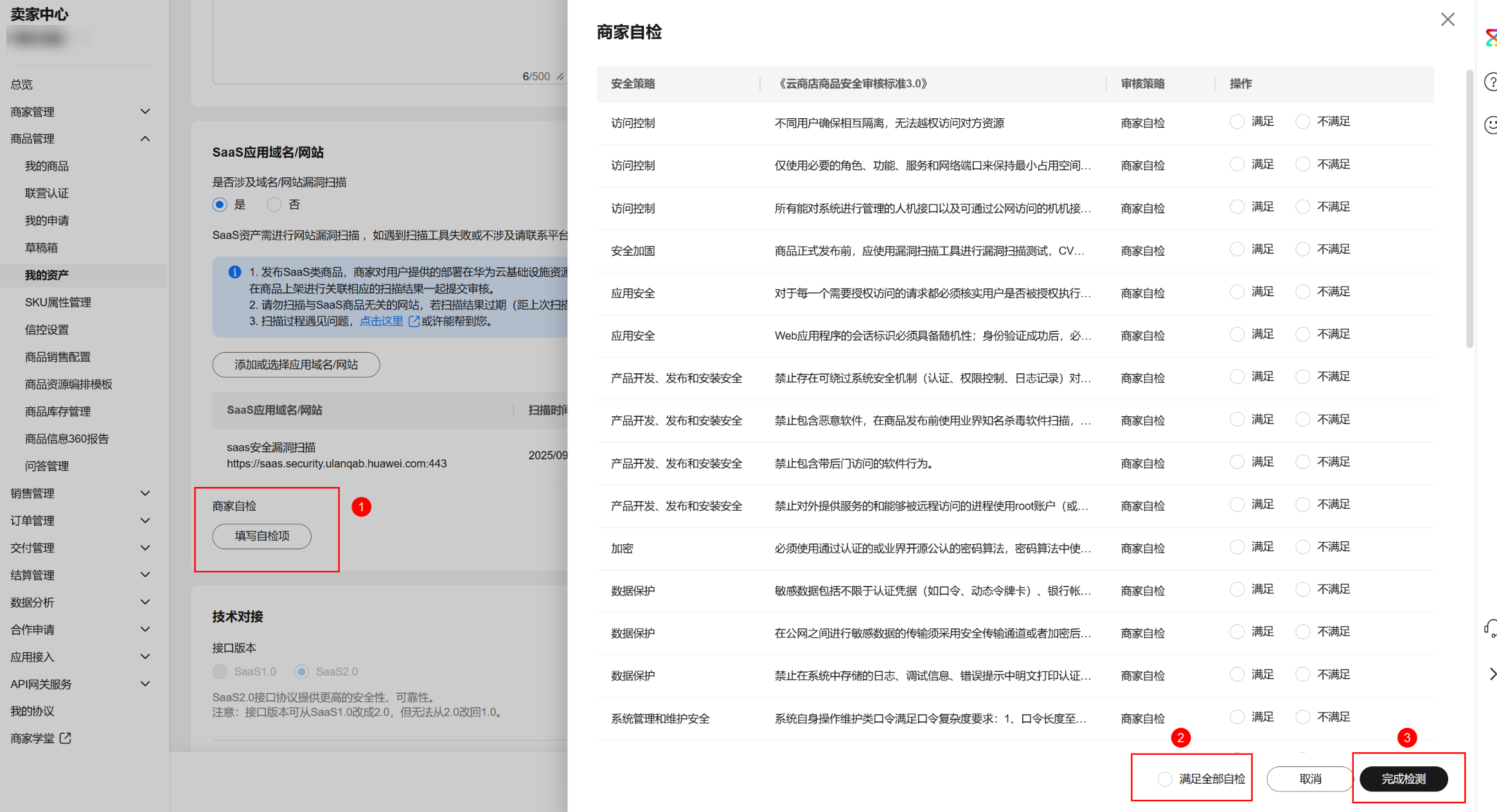 在资产中心添加的SaaS资产将用于后续SaaS商用软件发布,商家发布SaaS资产前请确认完成 SaaS接口的开发与调试、SaaS网站(包括业务前台,管理后台portal等)不存在高危漏洞(如XSS、SQL注入、CSRF、XXE注入、OS注入、跨目录访问、文件上传漏洞、敏感信息泄露、URL重定向泄露、TLS配置缺陷、网页木马等)。