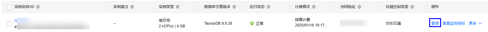 - 在RDS管理控制台,选择“实例管理”,选择MRS数据连接使用的RDS实例所在行的操作列的“登录”,以root用户登录该实例。