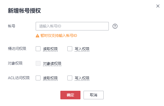 输入特定账号的“账号ID”,并为其设定相应的ACL权限。“账号ID”可通过“我的凭证”页面查看。