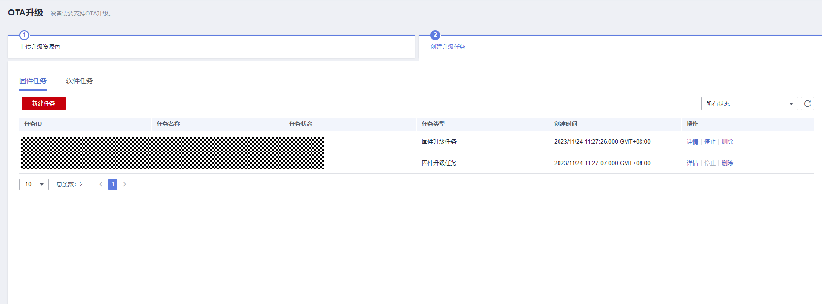 - 单击创建升级任务页签进入升级任务管理页面,可查看历史升级任务;
