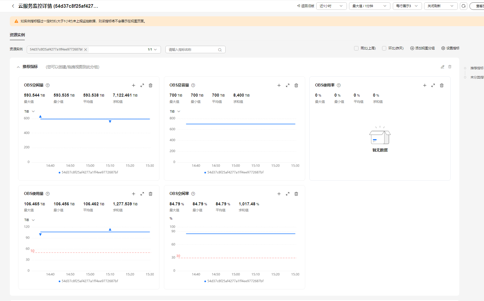 在监控区域,您可以通过选择时长,查看对应时间的监控数据。