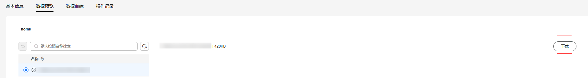 - 下载原始数据集。在“数据预览”页签,可以查看数据内容,单击右上角“下载”即可下载原始数据集。