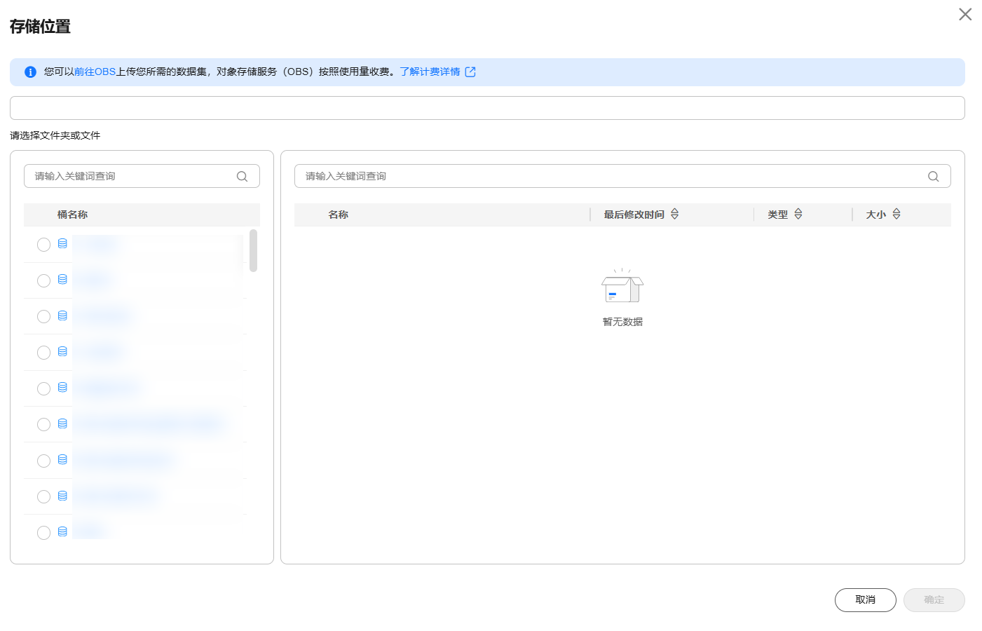 ”,在“存储位置”弹窗中选择需导入的数据,单击“确定”。