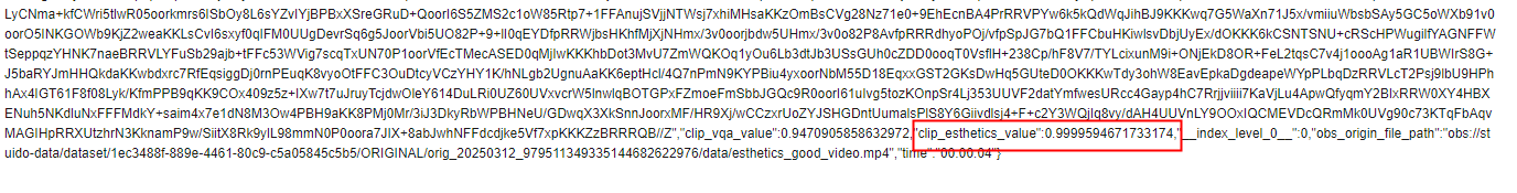对视频的基础质量(清晰度、亮度、模糊、画面抖动重影、低光过曝、花屏等)进行评分。分值范围(0, 1),数值越高质量越好,评分>0.05可认为是视频基础质量较高的视频。 |