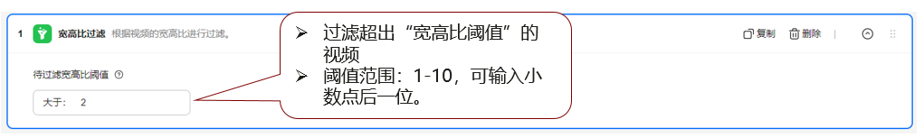 根据视频的宽高比进行过滤。宽高比是指视频图像的宽度和高度之间的比率。 |