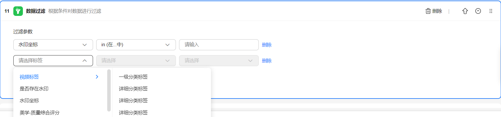 平台支持视频类数据集的加工操作,分为数据提取、数据过滤、数据打标三类,视频类加工算子能力清单见表1。