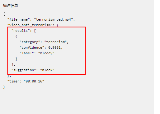label:模型检测出的具体暴恐标签,如果未检测出则为空。