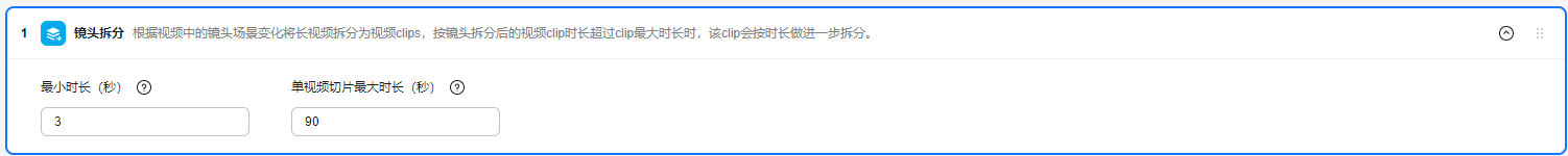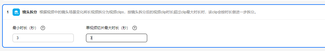根据视频中的镜头场景变化将长视频拆分为短视频片段,如果某个镜头片段的长度超过设定的时间阈值,该镜头片段将按时长进行进一步拆分。 |
