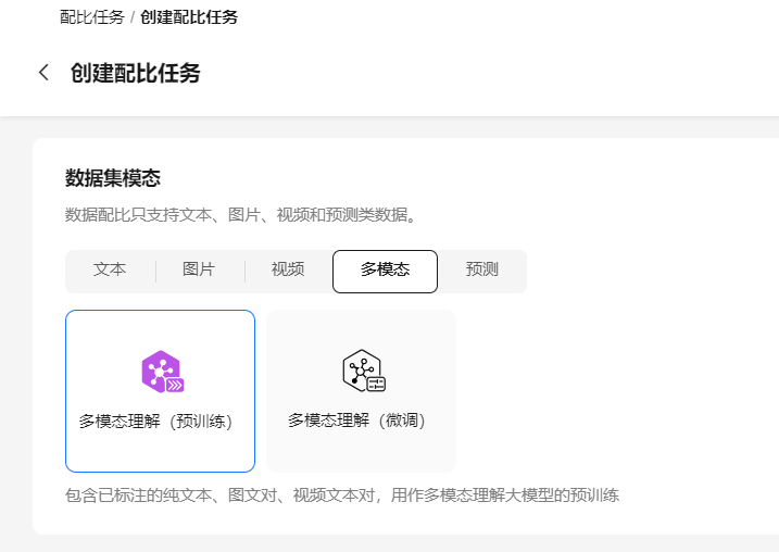 创建多模态类数据集配比任务步骤如下: