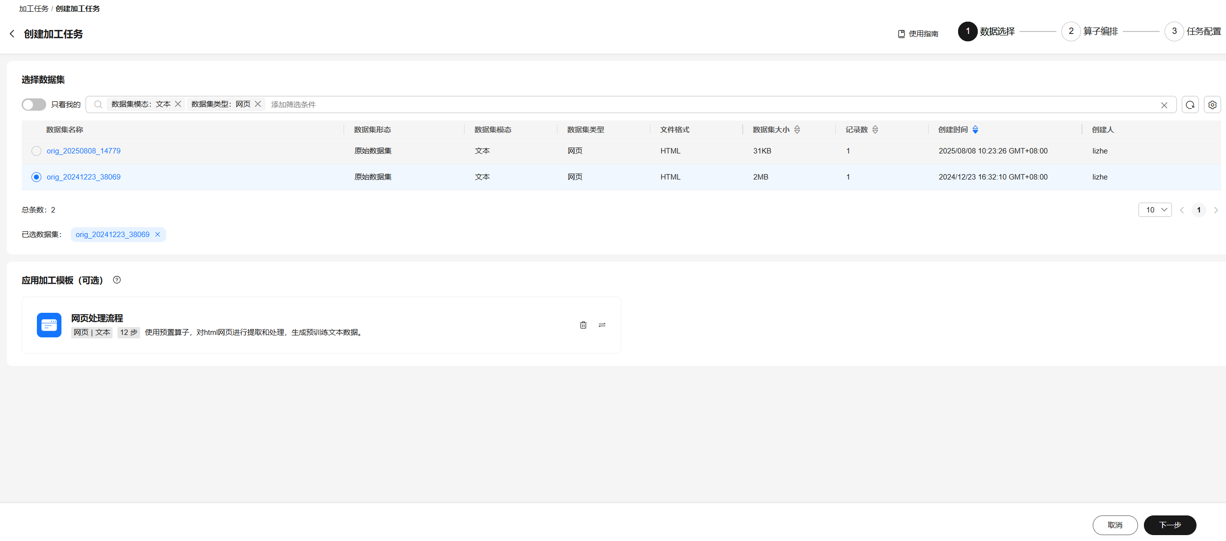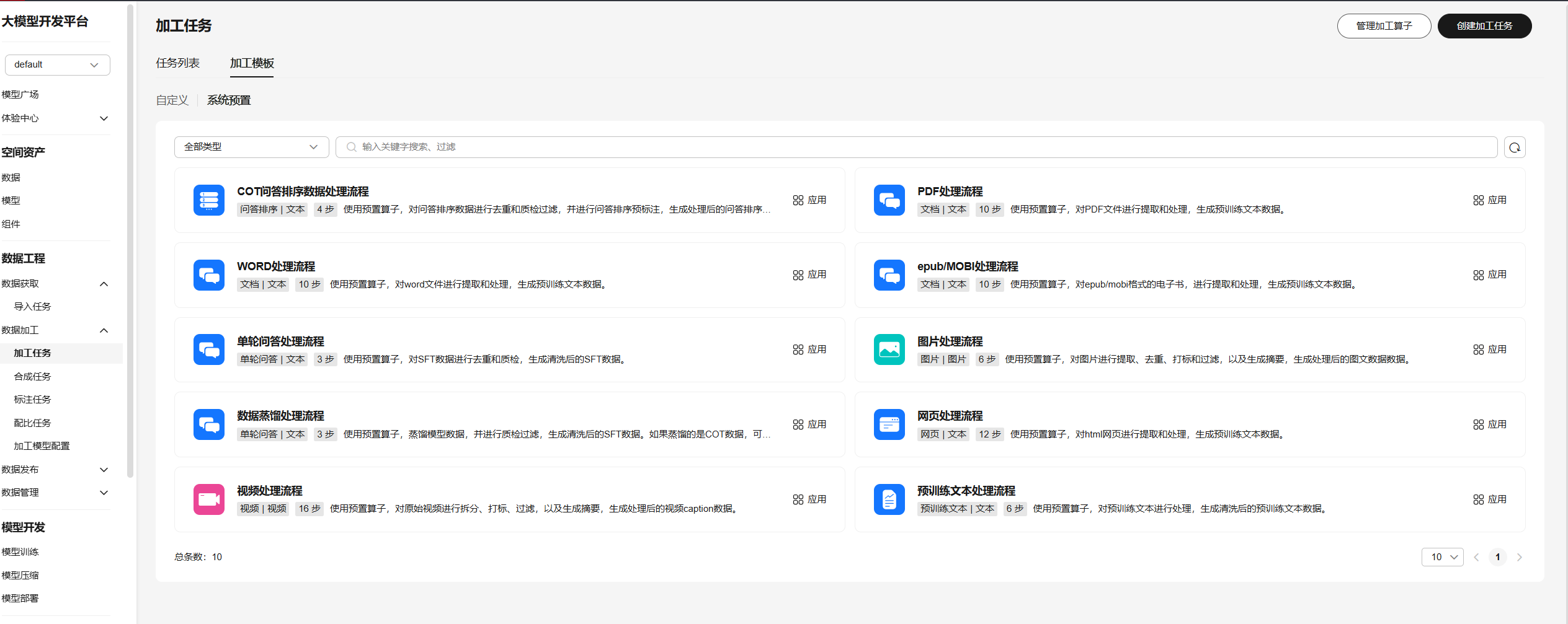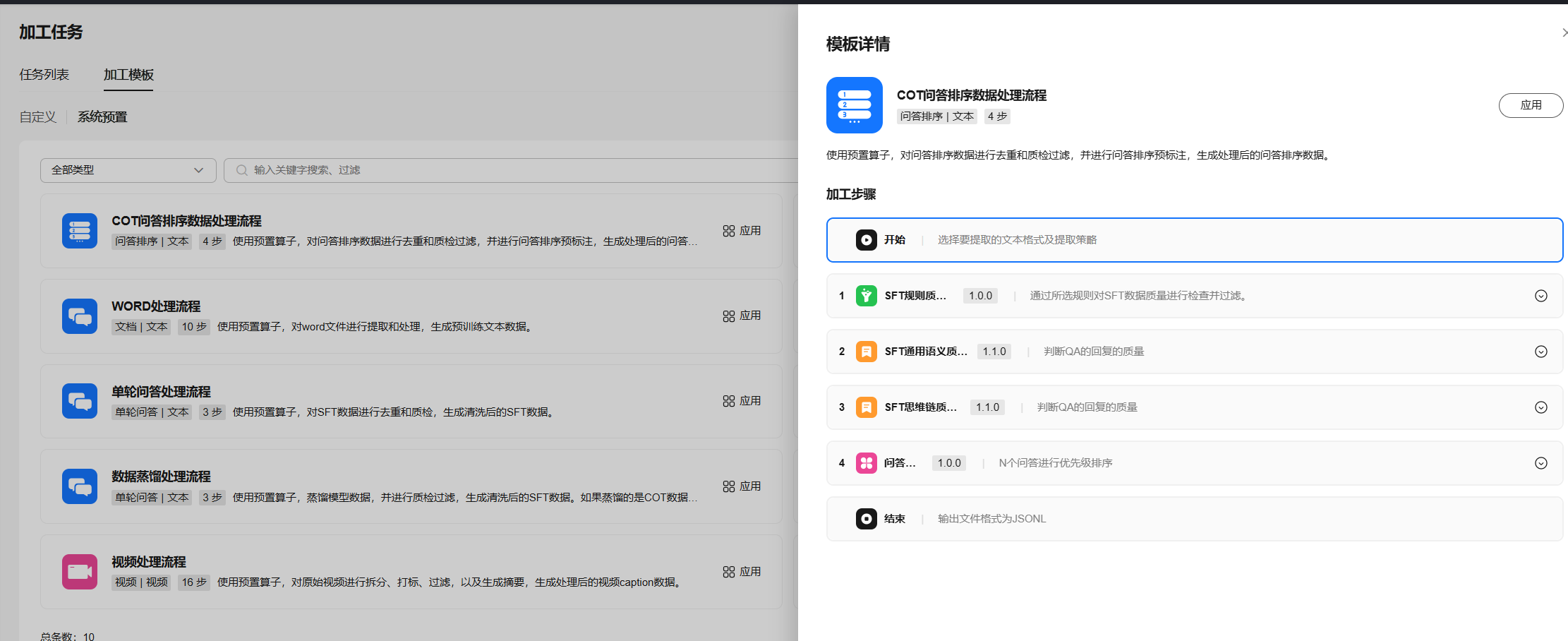 - 选择需要应用的模板,单击“应用”,会跳转到“创建加工任务”页面。