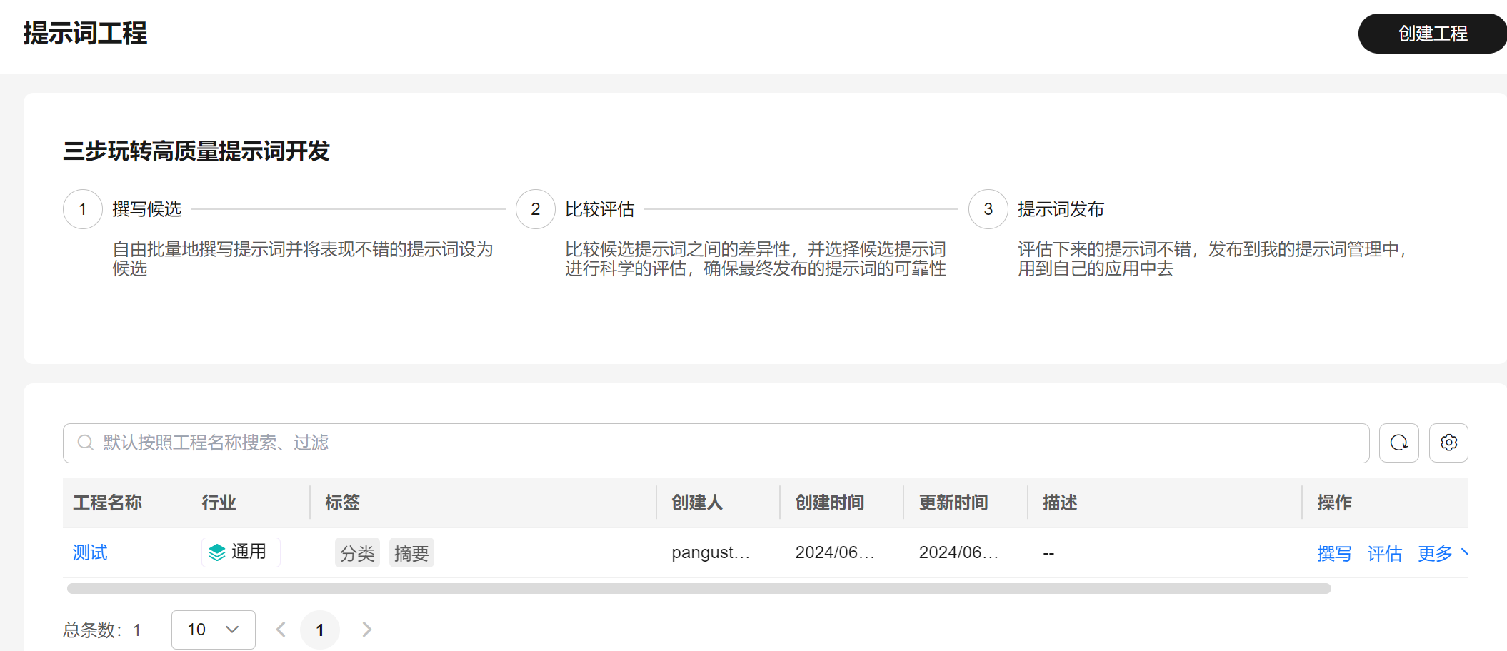 - 在左侧导航栏中选择“Agent 开发 > 提示词工程 > 提示词开发”。