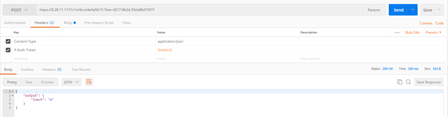- 服务部署完成后,可以根据服务列表中的访问地址完成服务的调用请求,请求体结构按照创建算法包组件时设置的结构进行填写。