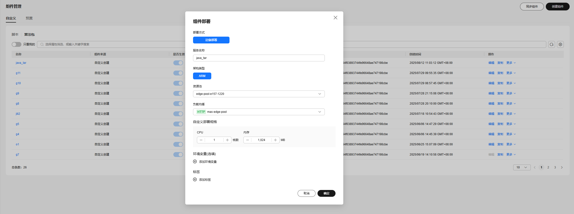 选择部署的边缘资源池。若需要使用Ascend卡,当前支持推理卡类型为Snt3p。