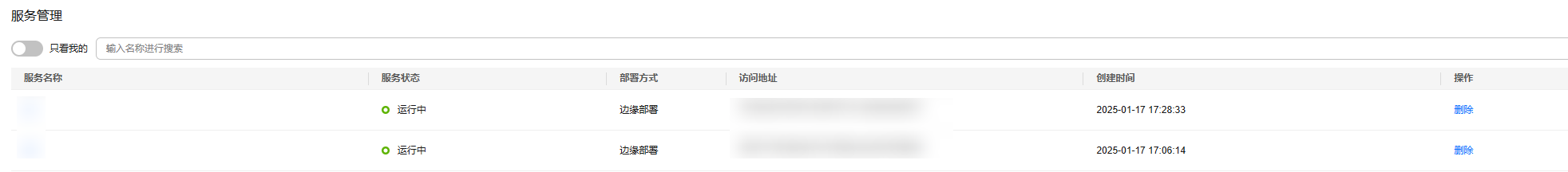 - 部署完成后,单击算法包名称,进入详情页后,可以在最下方的服务管理处看到服务列表信息。