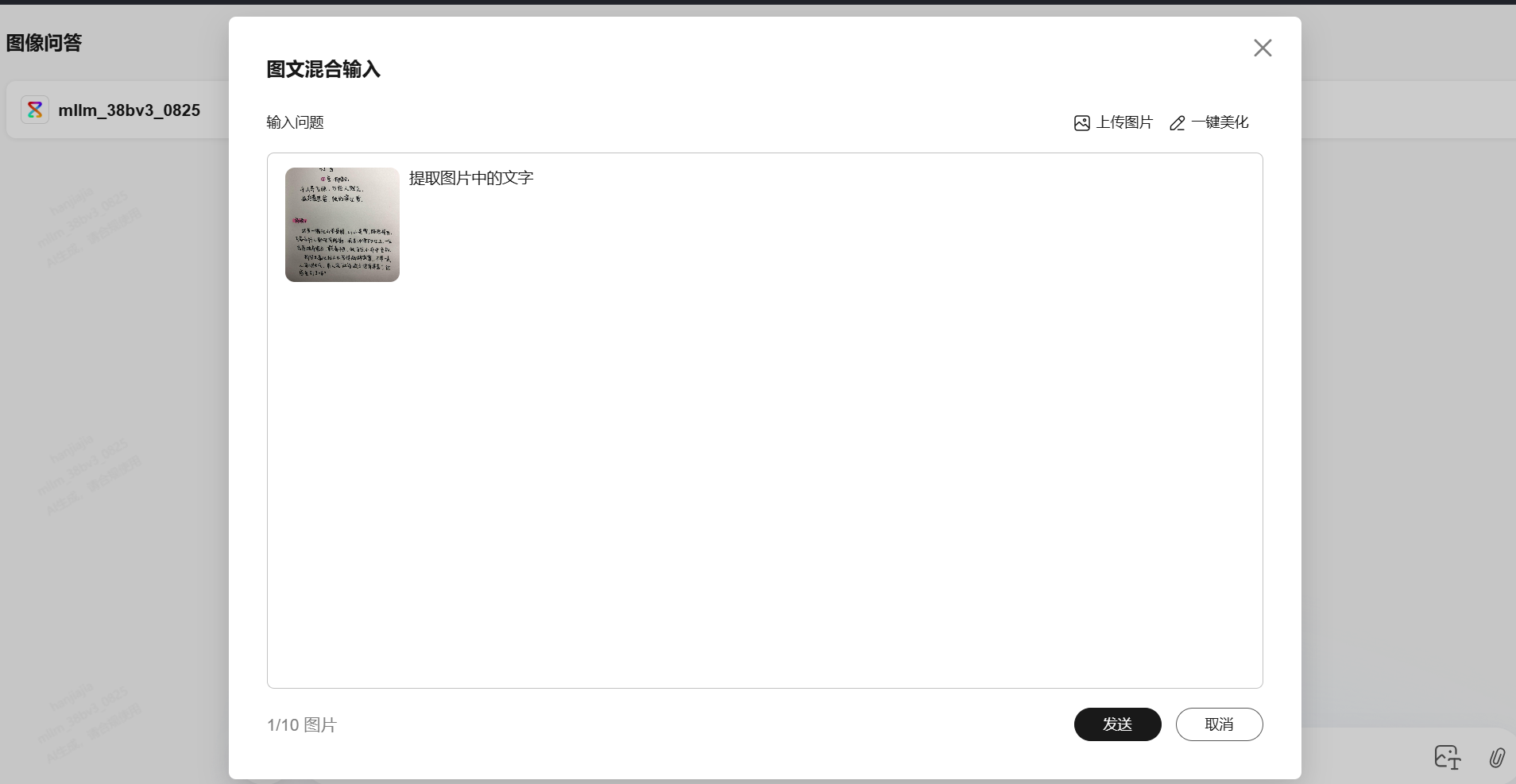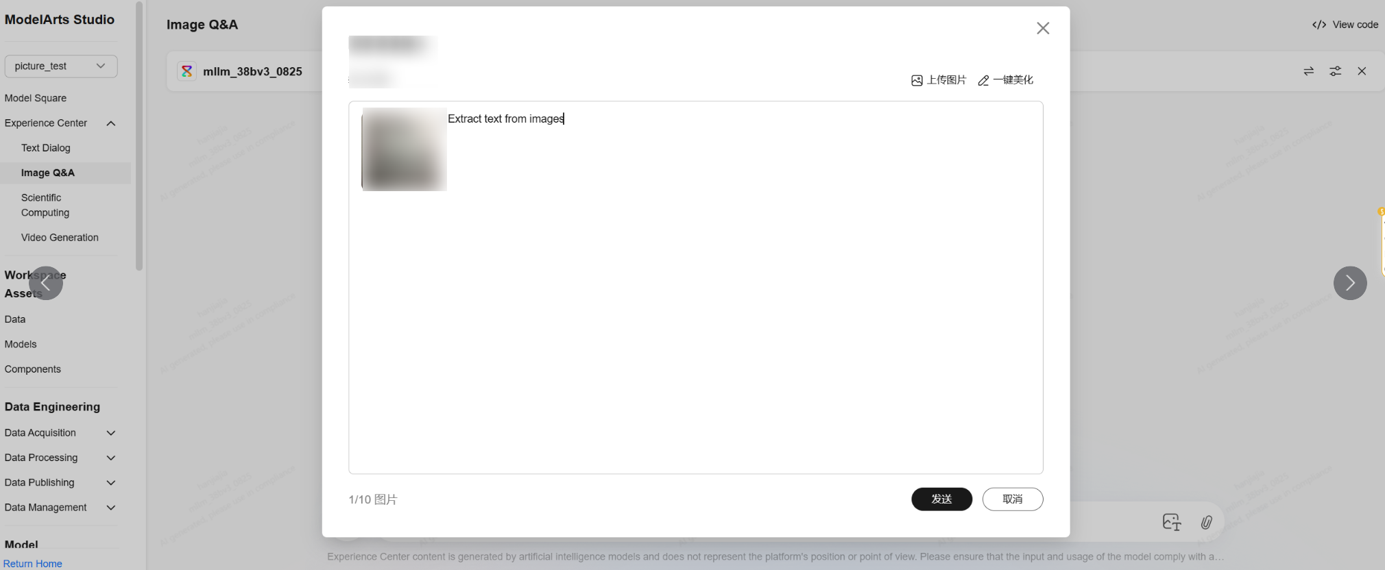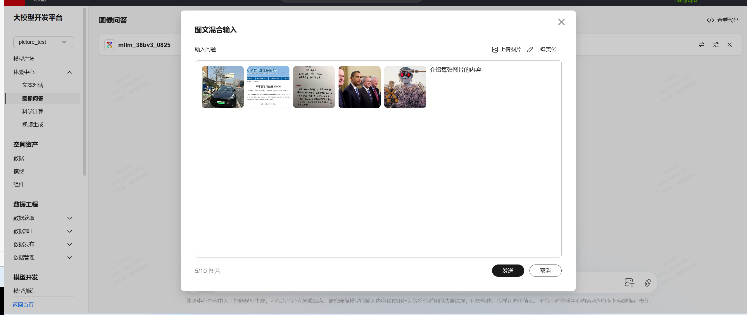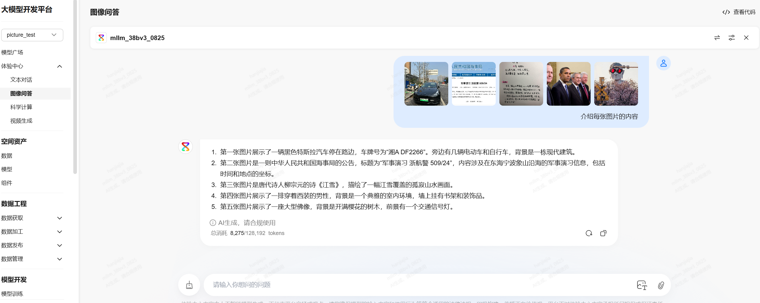 多模态大模型支持图像问答能力,在选择好订购的模型后,上传需要分析的图片,并在输入框中输入问题,模型就会基于图片内容回答问题。