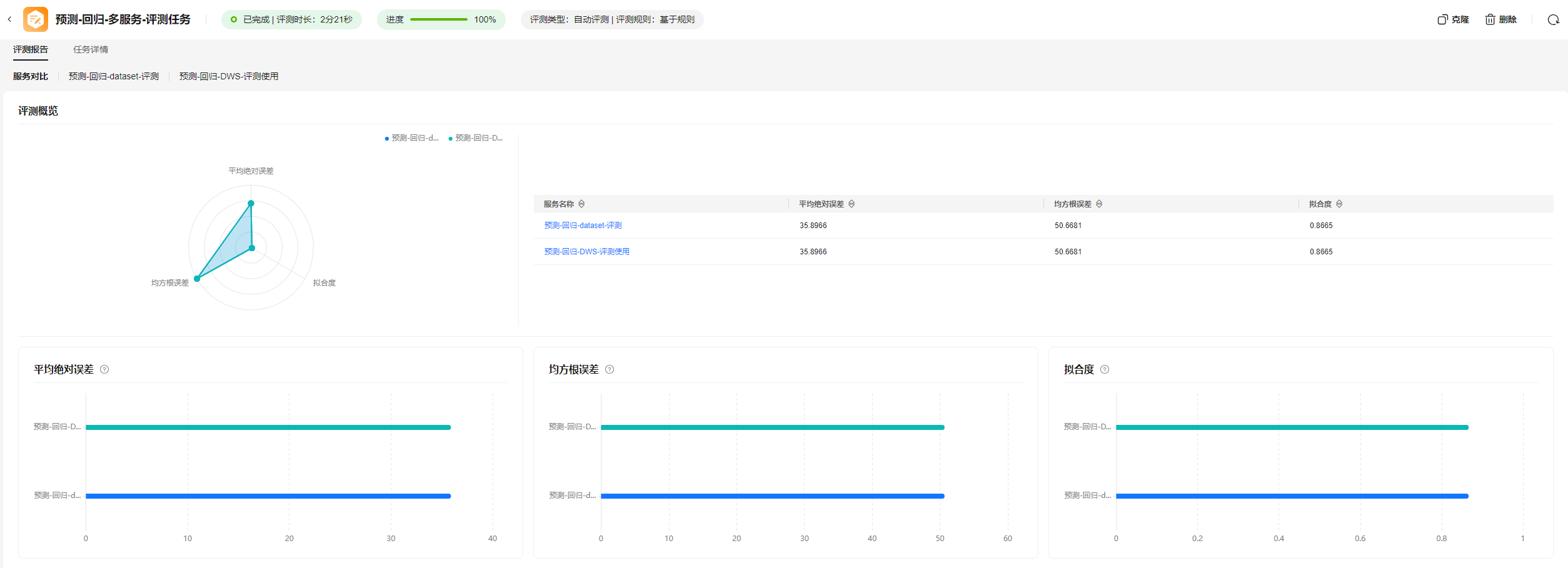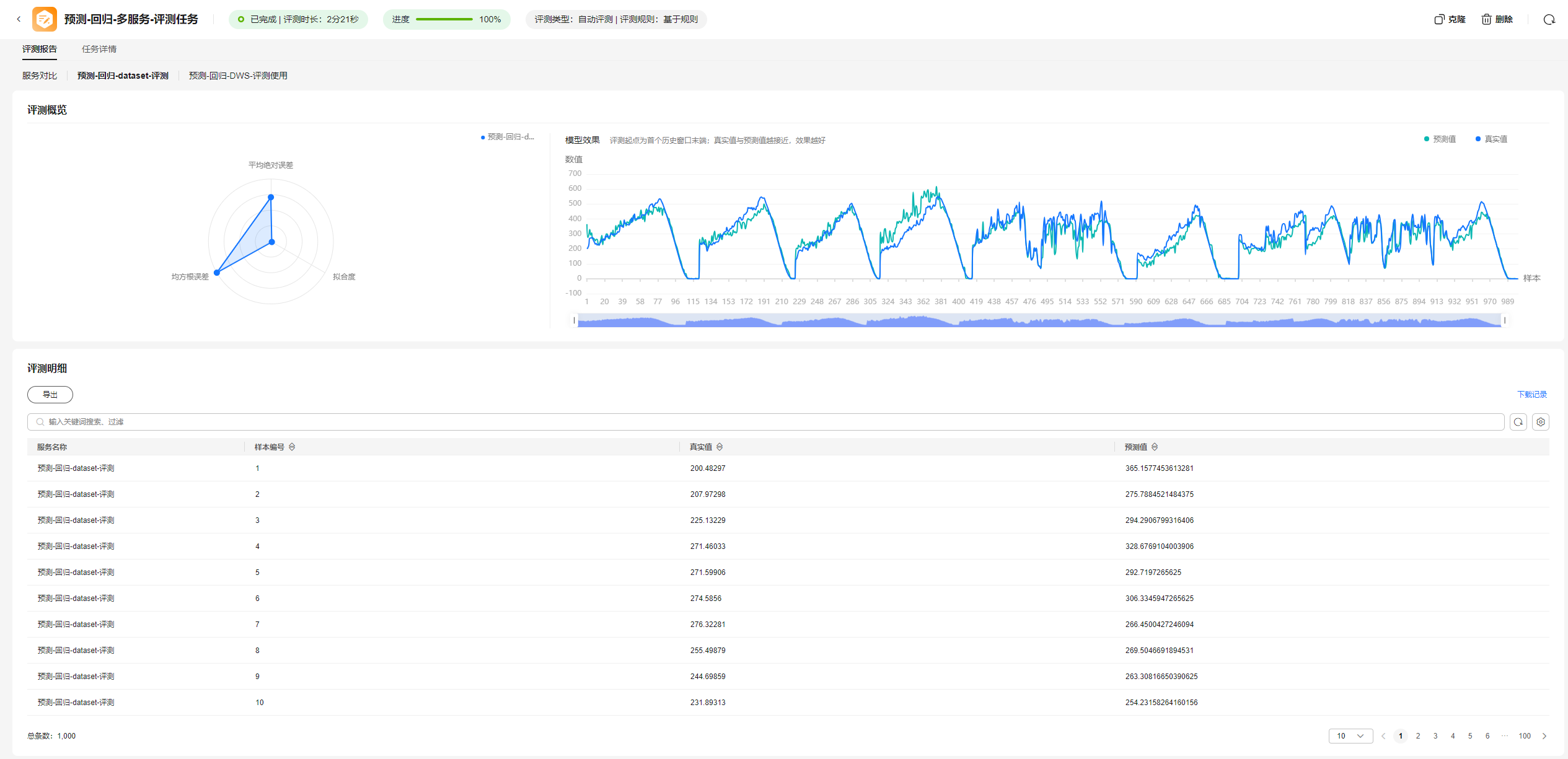图2 预测大模型多模型评测效果对比图3 预测大模型回归场景模型评测报告