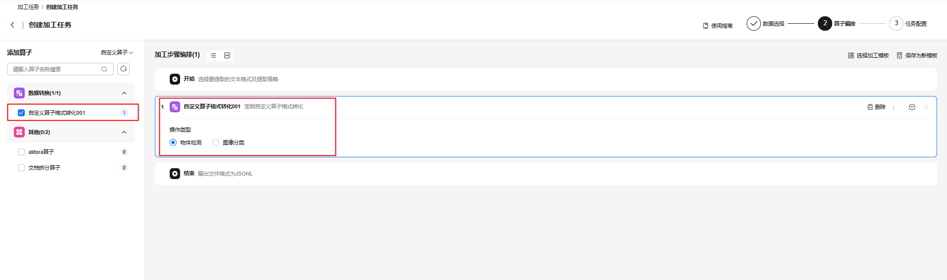 - 返回导航栏,选择“数据工程 > 数据加工 > 加工任务 > 管理加工算子 > 创建自定义算子”,如图3所示。