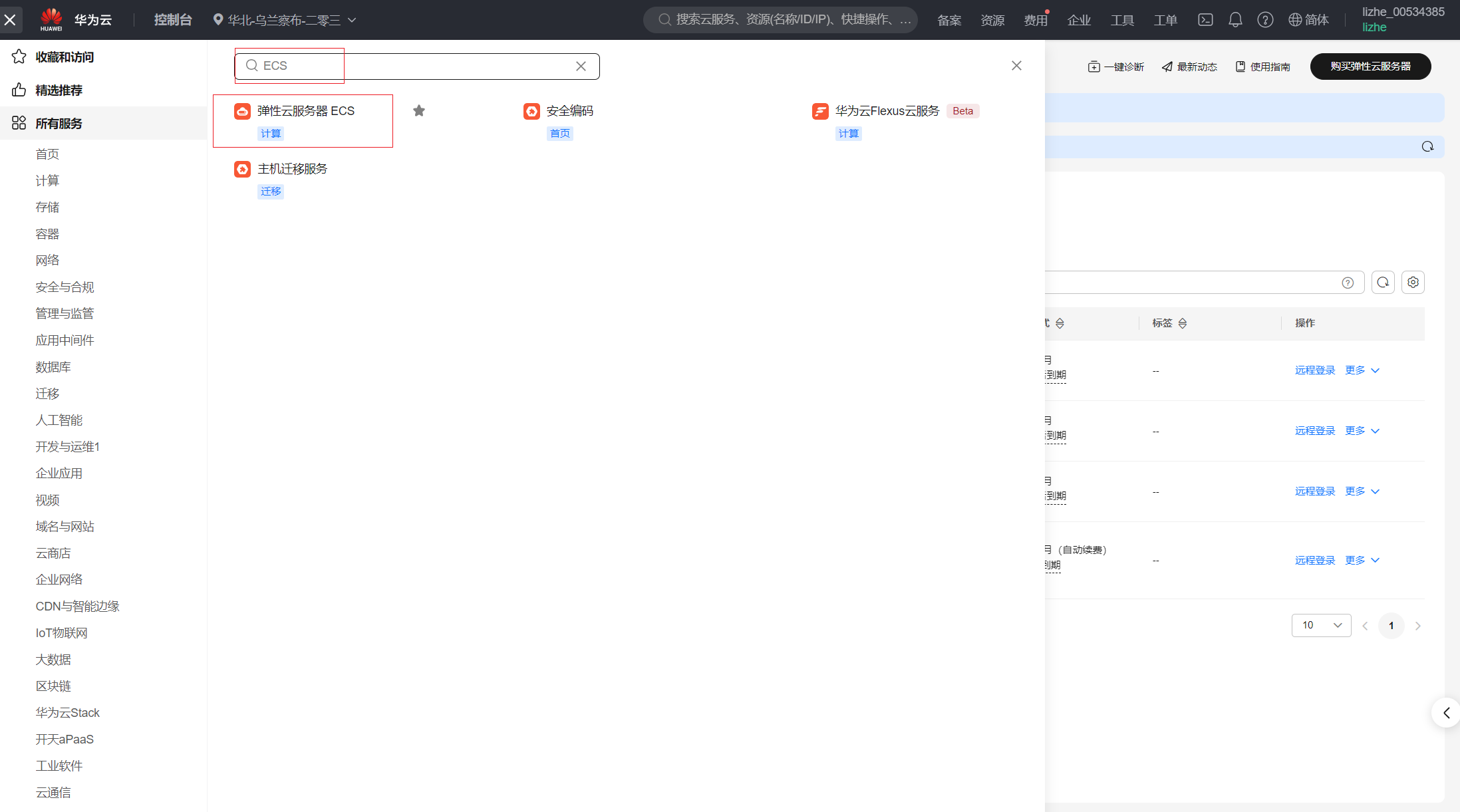 图3 在华为云前端界面搜索ECS,进入弹性云服务器界面