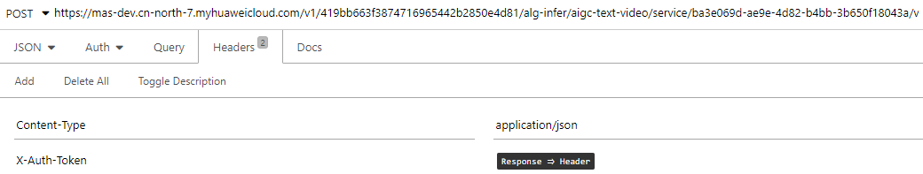 - 参数名为X-Auth-Token,参数值为获取Token中获取的Token值。