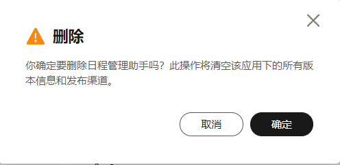 - 删除应用时虽然不会同步删除应用资源库中的所有资源,但应用不可恢复,请谨慎操作。