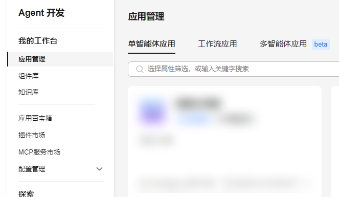 - 在左侧菜单栏,单击“我的工作台 > 应用管理 ”,选择不同页签对应的不同类别的应用。